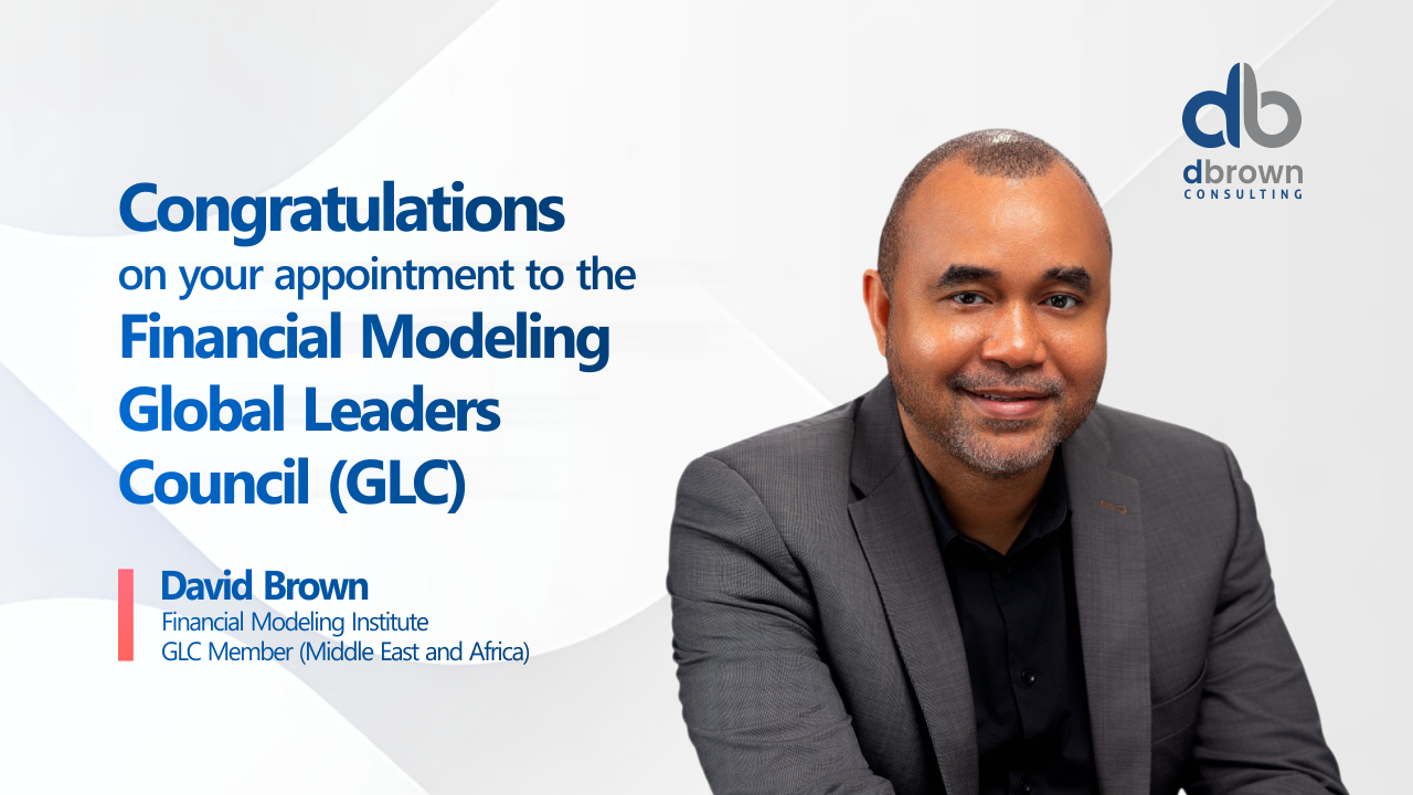 “I am honored to join the Global Leaders Council and contribute to shaping global standards for the financial modeling profession. This appointment reflects the work we have done at dbrownconsulting to build world‑class modeling talent across Africa and beyond. I look forward to collaborating with fellow global experts to strengthen the profession for practitioners worldwide.” - David Brown